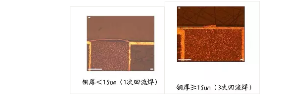 D、對于樹脂與銅分層的問題,我們發現孔表面的銅厚厚度大于15um時,此類樹脂與銅分層的問題可以得到極大的改善。(如下圖)